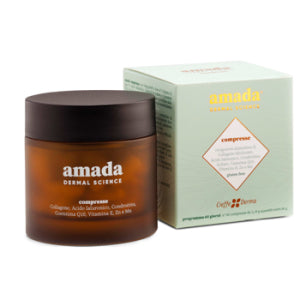 Integratore alimentare a base di collagene di tipo II, acido ialuronico, condroitina e coenzima Q10. Con zinco e vitamina E che proteggono le cellule dallo stress ossidativo. Lo zinco contribuisce anche al mantenimento di una pelle normale. Amada compresse è costituito da un complesso di attivi altamente biodisponibili e ben tollerati, e rappresenta un valido supporto nel combattere i segni dell'invecchiamento sulla pelle. Ideale nella preparazione e nel follow up dei trattamenti di estetica, in quanto stabilizza l'applicazione dei filler di collagene e acido ialuronico. Agisce dall'interno e conferisce elasticità, idratazione e compattezza all'epidermide, riducendo la comparsa di linee sottili e rughe, per una pelle dall'aspetto più giovane e luminoso.