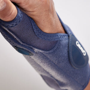 Ortesi per la stabilizzazione del polso e del pollice in posizione funzionale, mantenendo la mobilità delle altre dita e la prensilità della mano. Steccaggio palmare rigido e modellabile per l’immobilizzazione relativa del polso e steccaggio radiale modellabile per l’immobilizzazione relativa del primo raggio della mano. Confortevole fodera imbottita. Cuscinetto per il confort del palmo della mano. Fascia a livello del polso e linguetta a livello del pollice elastiche con chiusura a strappo.
