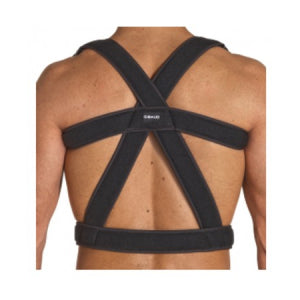 Sistema di tiranti regolabili con funzione di richiamo posturale. Il prodotto è rivestito in morbida spugna nei punti di maggiore attrito.